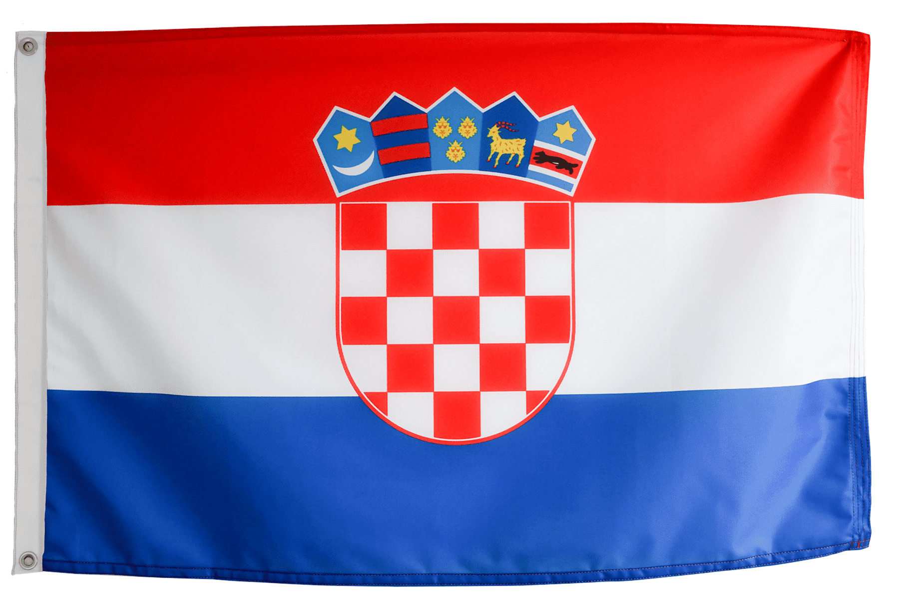 - The flag is hemmed all around for a neat finish; for larger flags the fly end (the edge furthest from the flagpole) is triple hemmed