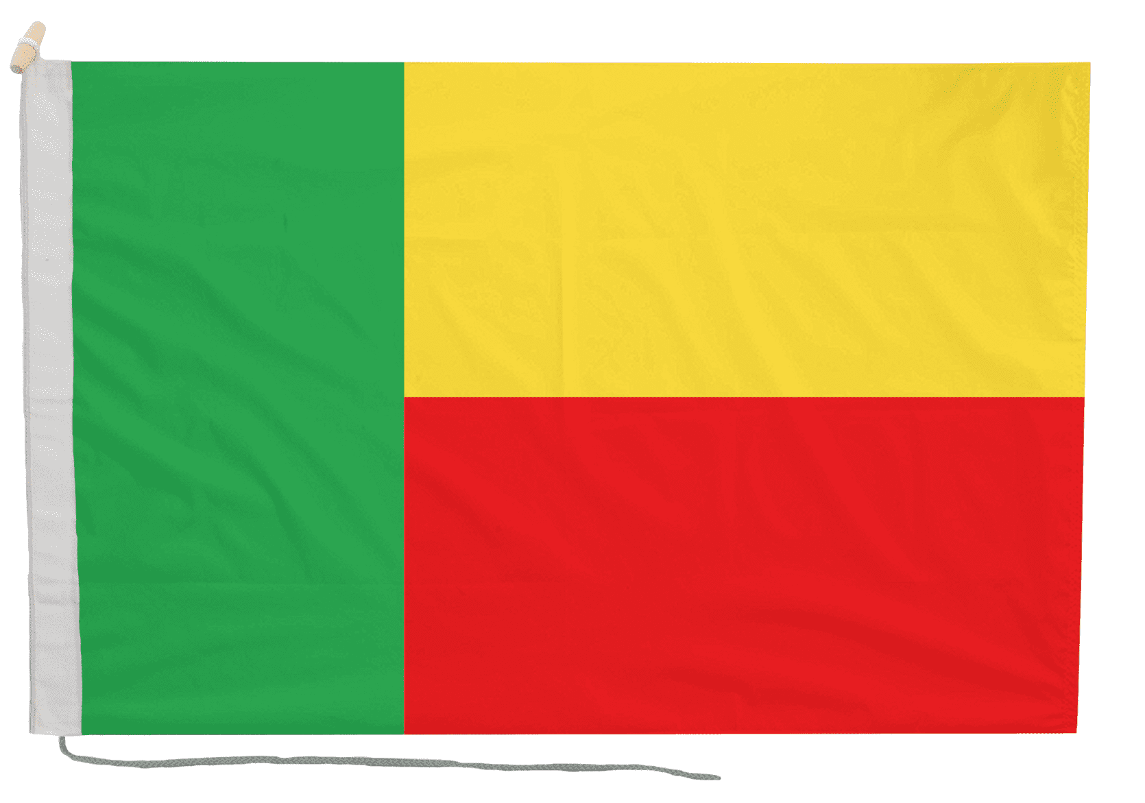 - The flag is hemmed all around for a neat finish; for larger flags the fly end (the edge furthest from the flagpole) is triple hemmed