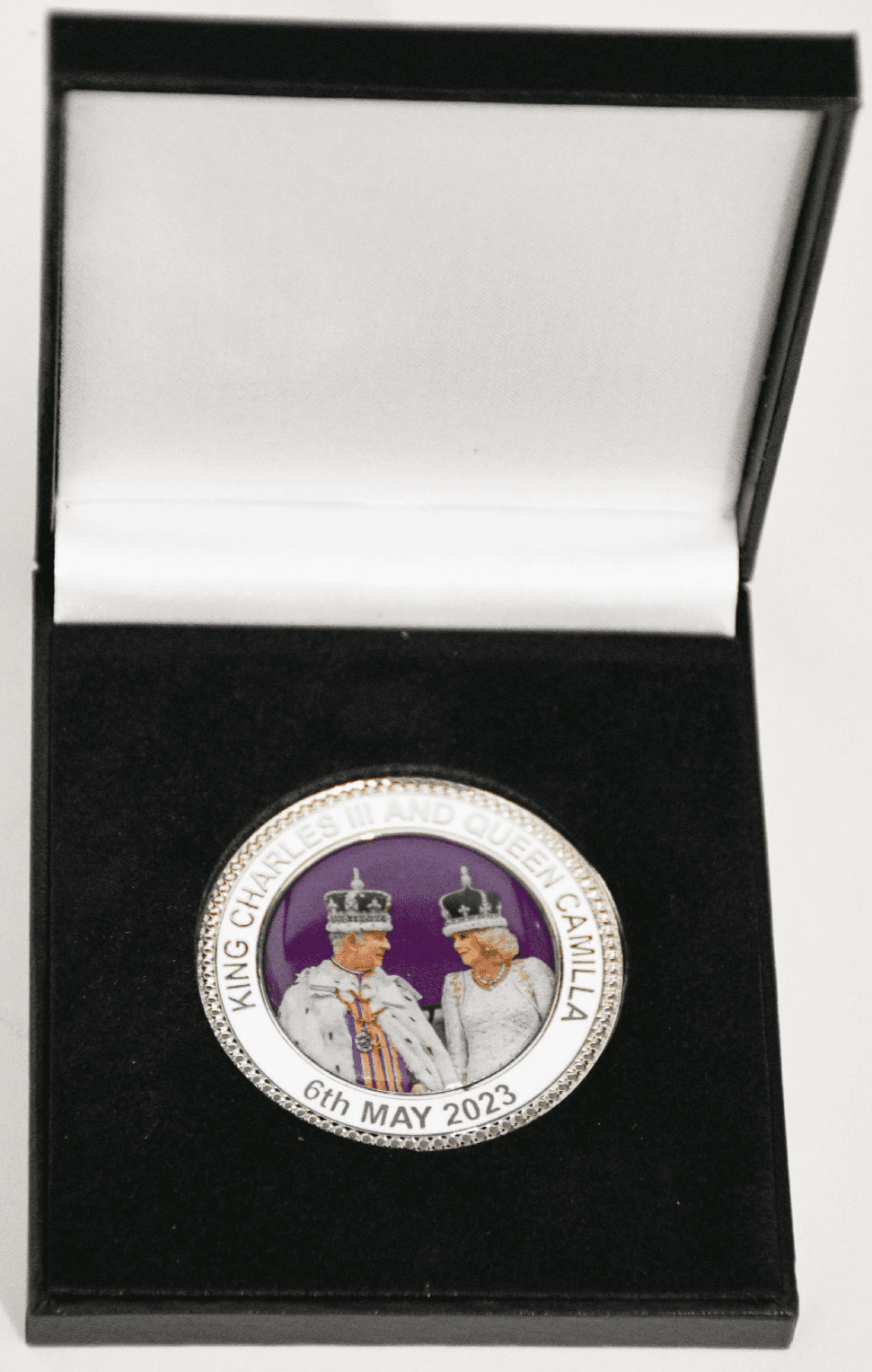King Charles III and Queen Camilla Commemorative Coin Medal in Box £16.00 Add to Wish List Description Reviews Beautiful Commemorative Coin To Celebrate King Chales III Coronation High Quality Enamel On Metal Brand New 44mm x 44mm x 3mm Approx' Supplied In A Slimline Presentation Box Posted FREE Within UK Reviews Write a customer review and share your thoughts with other customers. Be the first to review this product. Related Products This product has no related items.