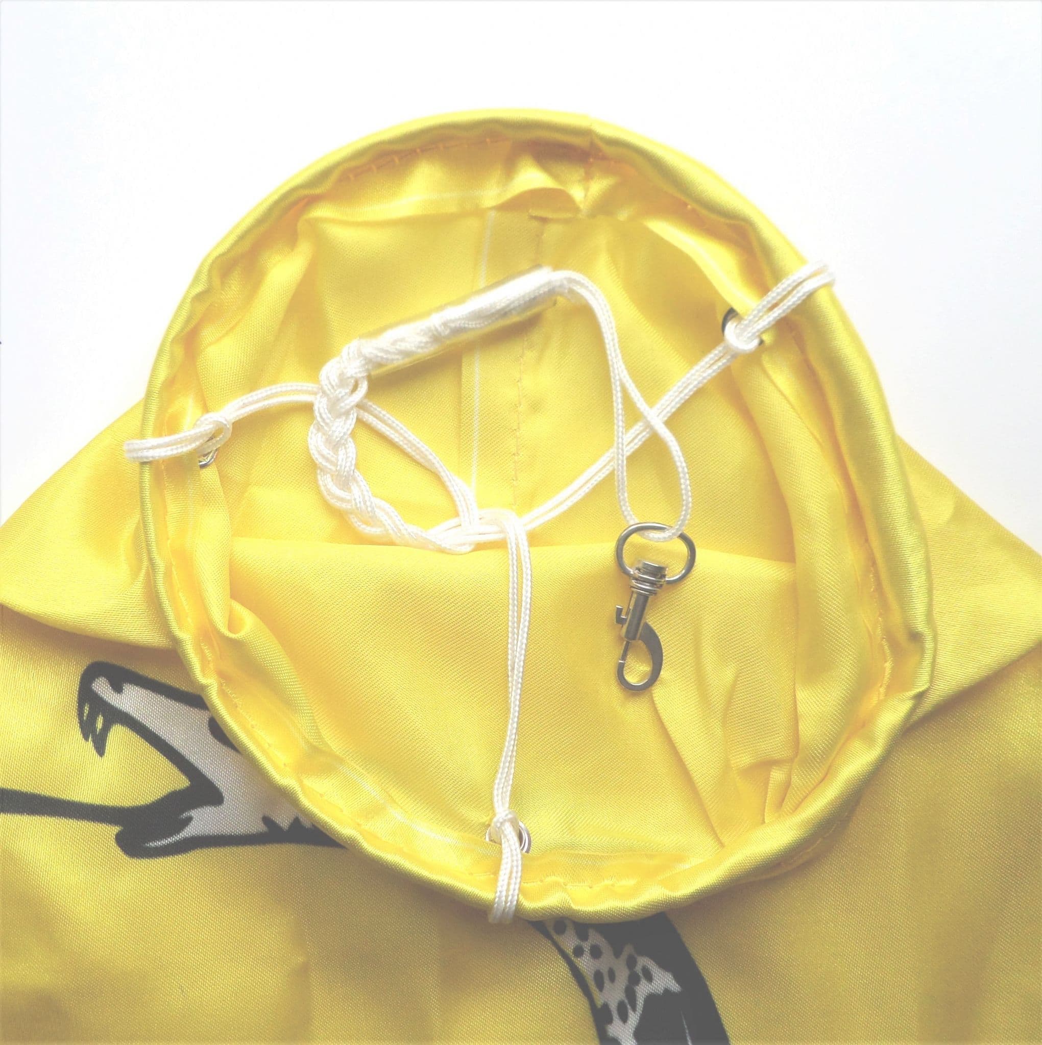 Strong nylon cords are attached to a swivel clip to allow the windsock to be hung up easily.
